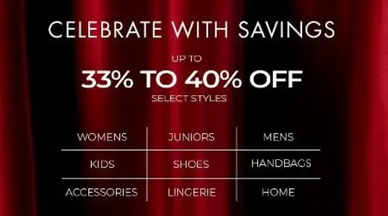Celebrate with savings! Shop in store and get up to 33% to 40% off select styles.